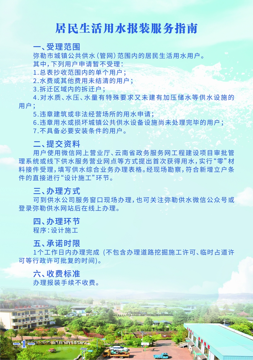 彌勒市城鎮(zhèn)供水服務(wù)事項(xiàng)辦理指南