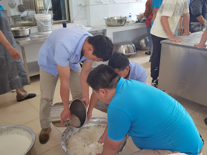 活動當日,來自各部門抽調(diào)的員工齊聚公司食堂,平日里忙碌于供水一線、辦公室的職工們紛紛化身“廚房能手”,一場充滿煙火氣與歡聲笑語的做包子活動正式拉開帷幕。在專業(yè)面點師傅的悉心指導下,大家嚴格按照做包子的規(guī)范程序,有條不紊地開展每一道工序。稱面、和面、發(fā)面、醒面、揉面,每一個環(huán)節(jié)都飽含著大家的專注與期待;調(diào)餡過程中,員工們充分發(fā)揮創(chuàng)意,調(diào)配出各具特色的餡料,為即將誕生的包子注入獨特風味。